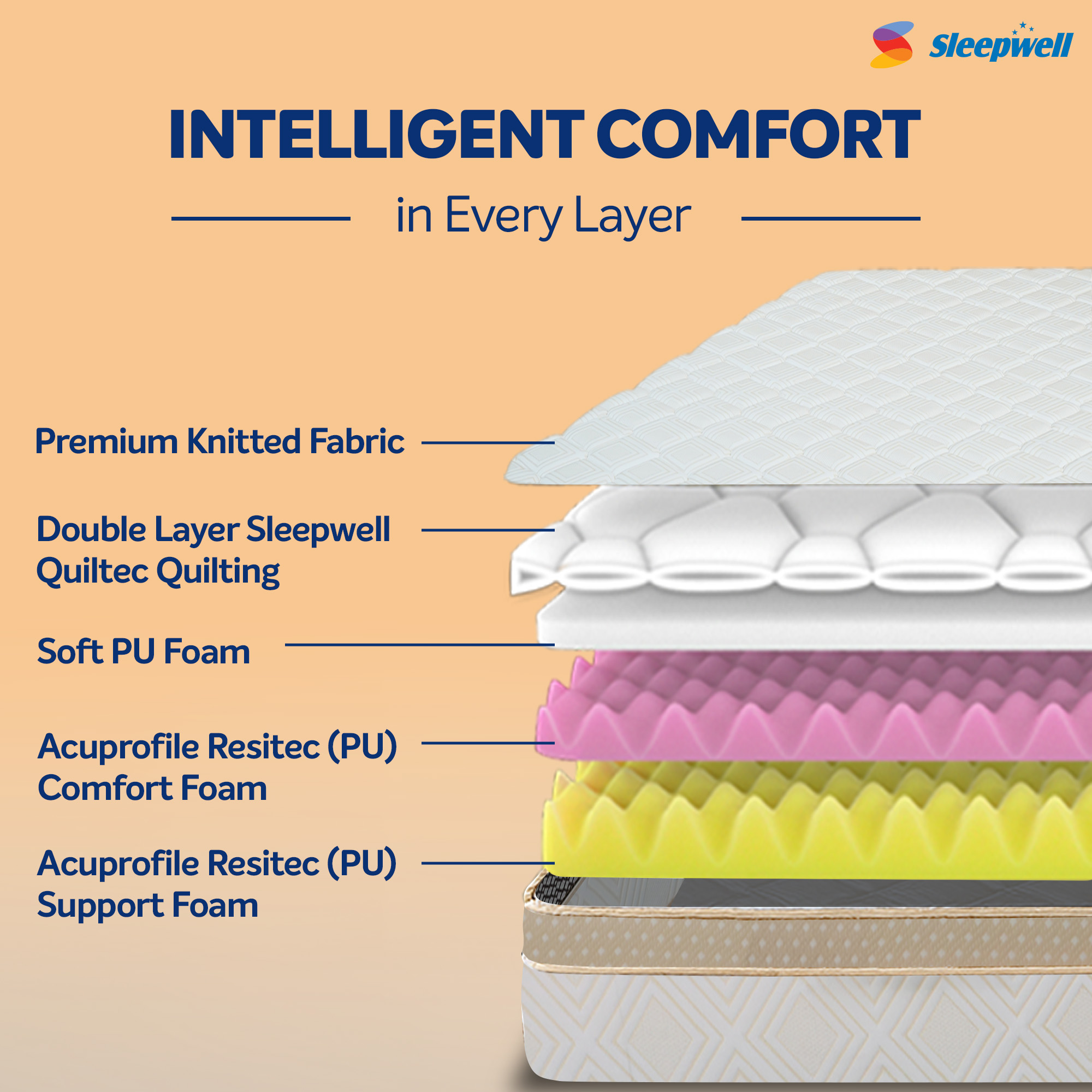 Discover intelligent sleep support with the FitRest Classic Mattress featuring Sleepwell Acuprofile™ technology, designed to deliver ergonomic comfort and optimal spinal alignment without stretching your budget.