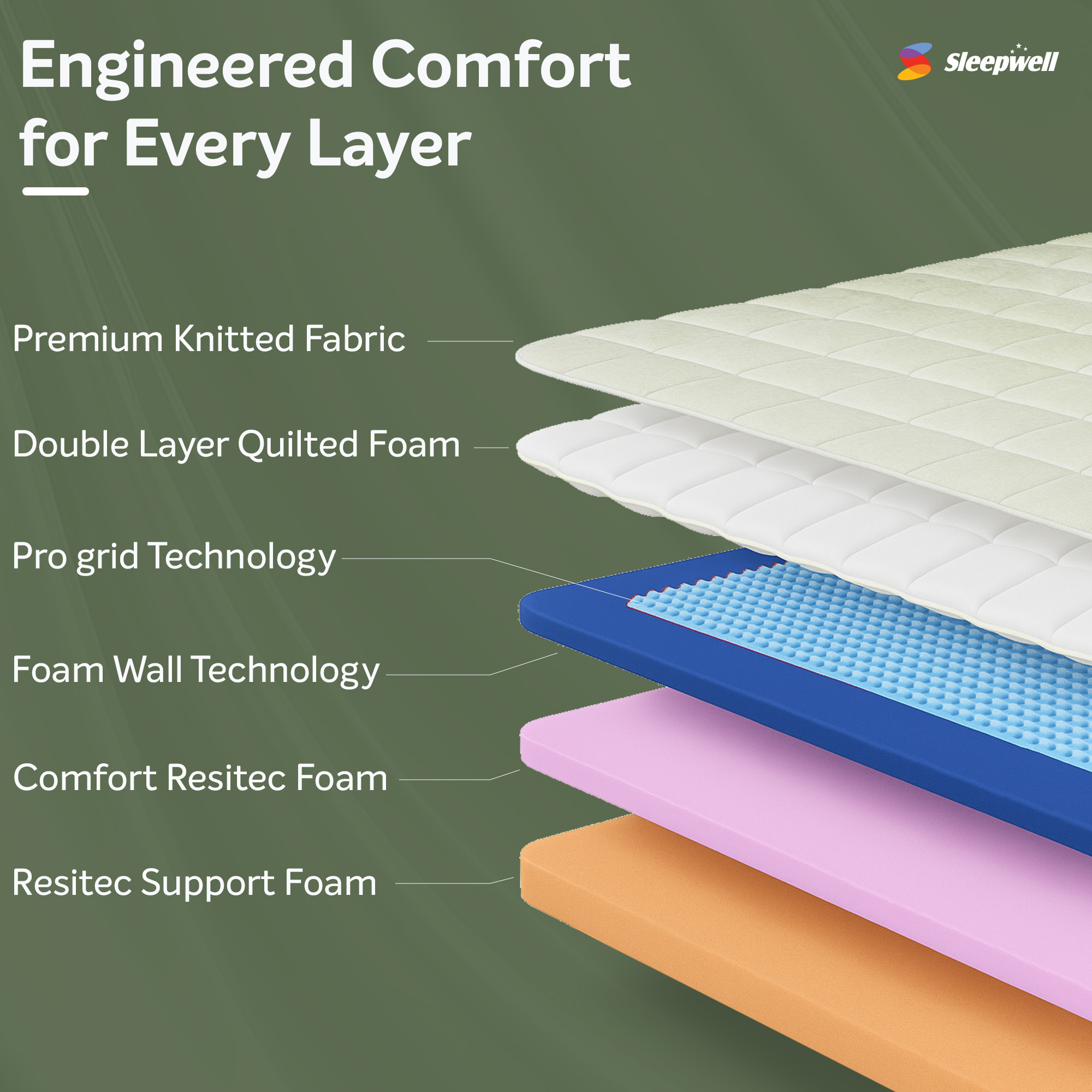 Step into the future of sleep with the Sleepwell ProGrid Mattress, engineered with cutting-edge materials and intelligent design to deliver unmatched comfort, cooling, and spinal support. With an impressive 25 cm height, this mattress is built for those who seek premium performance and restorative sleep every night.